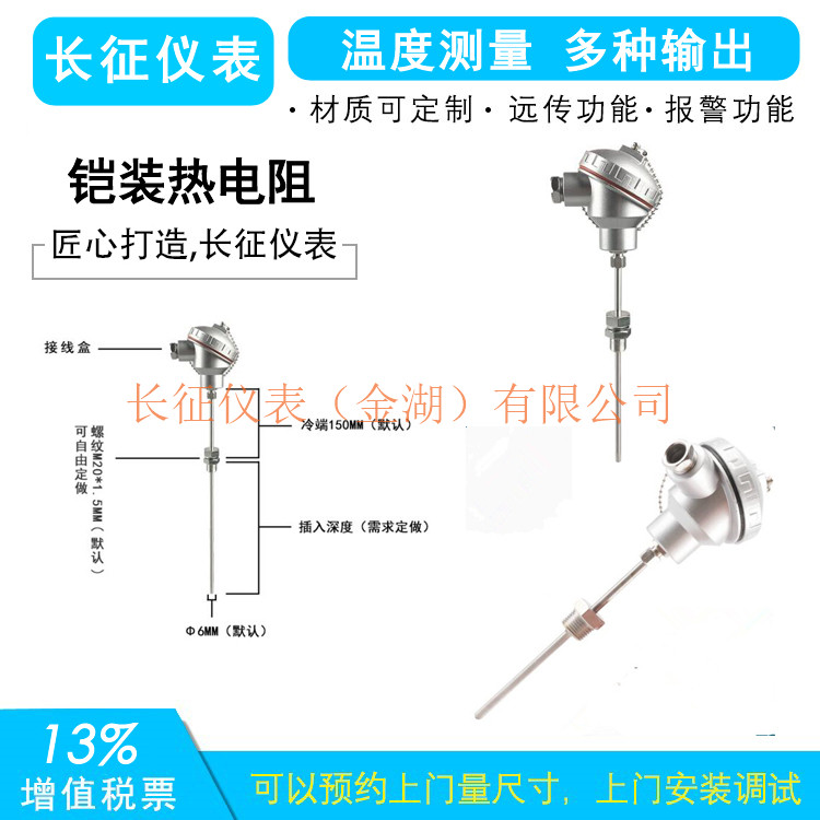 鎧材是制造鎧裝熱電阻的基體材料,鎧材不能直接用于測(cè)溫,必須制作測(cè)量端和簡(jiǎn)易接線端后方可作為基型鎧裝熱電阻使用,鎧裝熱電阻的結(jié)構(gòu),除五部中的測(cè)溫元件、絕緣材料、保護(hù)套管三部分構(gòu)成鎧材整體以外,其余與常規(guī)熱電阻的結(jié)構(gòu)相同。