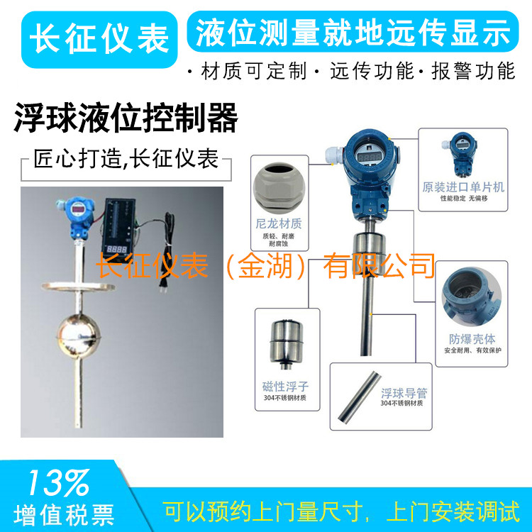 浮球液位計可用于開口/密閉容器或者地下池槽的介質液位進行就地測量指示,同時輸出標準電流信號,以兩線制或者三線制方式提供給控制室二次儀表。變送器由電子線路/測量桿和浮球三個主要部分組成,浮球中裝有永久磁鐵,測量桿中每隔一定距離安裝一只干簧管,由它檢測浮球的位置。