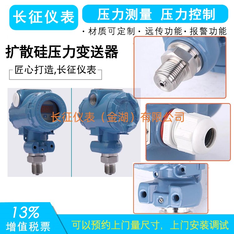 擴散硅壓力變送器采用口陶瓷傳感器,再配以電子元件,經嚴格要求的工藝過程裝配而成。壓力變送器與使用的常規壓力變送器相比,有兩個顯著不同的技術差別:一是測量元件采用新興的高精密陶瓷材料;二是測量元件內無中介液體,是完全固體的。