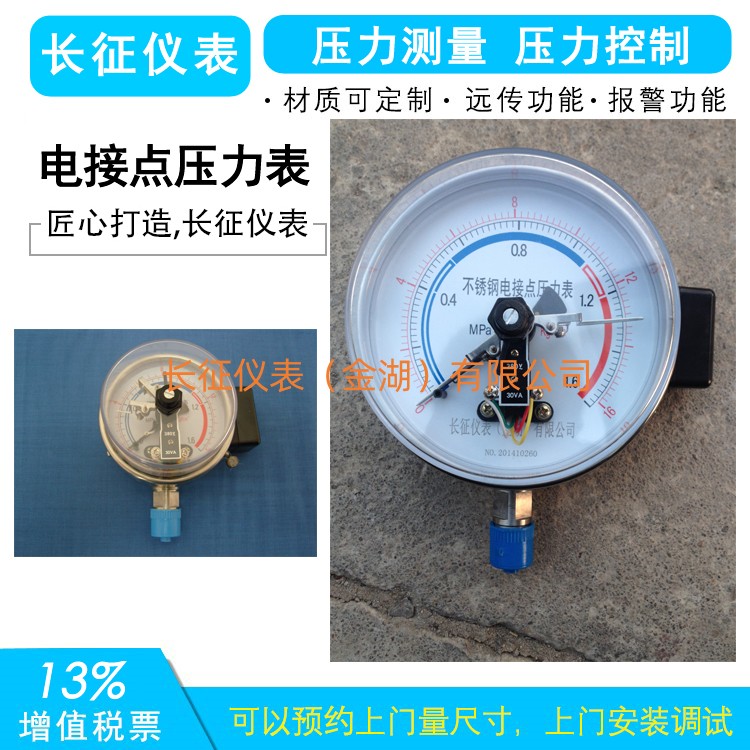 電接點(diǎn)壓力表通常與相應(yīng)的電氣器件(如繼電器及變頻器等)配套使用,即可對被測(控)壓力的各種氣體與液體介質(zhì)經(jīng)儀表實(shí)現(xiàn)自動控制和發(fā)信(報警)的目的。